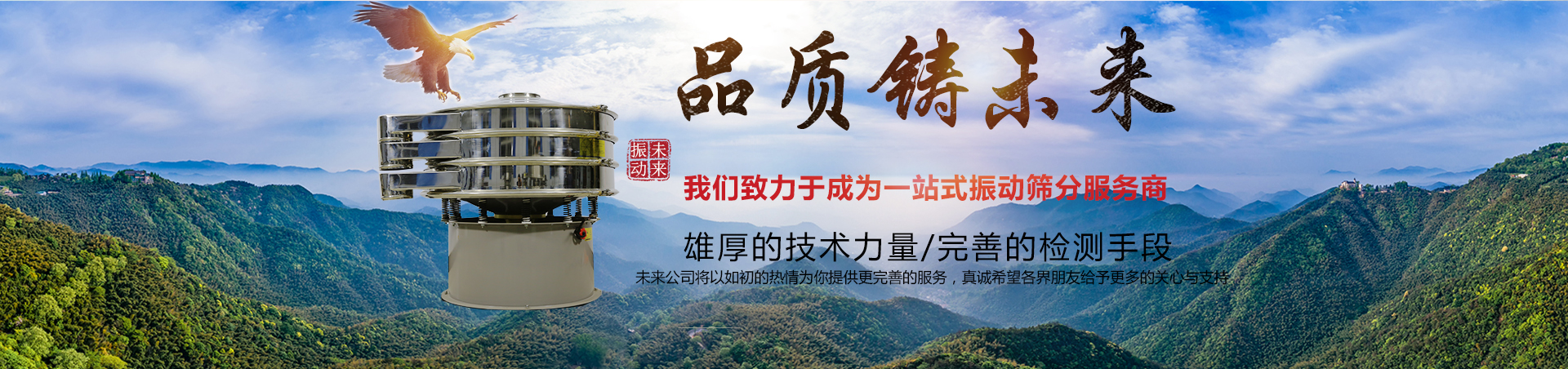 完美品質鑄就未來  新鄉市未來振動設備有限公司**生產標準多層振動篩,陶瓷泥漿專用振動篩,面粉專用篩分機,淀粉專用振動篩,超聲波振動篩,超靜音振動篩等等振動篩及其配套用振動電機,設備配件。  未來公司是生產振動篩分設......